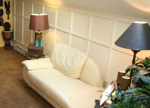 This is a bonus room over a 2 car garage and my client Ms. Edwards wanted to use this space as a restful office/ retreat. Ms. Edwards is a collector of many wonderful items and wanted to reuse whatever she already owned and purchase what was needed.