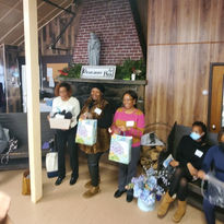 The wonderful team consisting of 4 Chapter members who worked together well to bring this to fruition. Thank you Karen St. Vil for creating and painting a beautiful African Sunset Mural, Rhonda Clarke, Deborah Quarless and Regina Darby for their hard work bringing everything together.